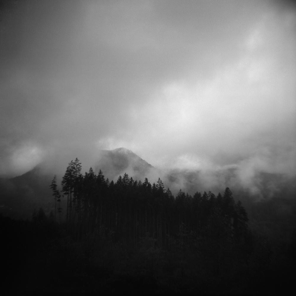 Analogue photo of Tree stand at the edge of a clear cut. British Columbia